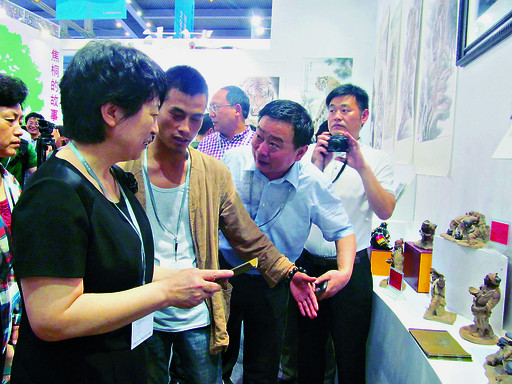 趙素萍對(duì)我市展出的泥塑、泥咕咕、裸眼3D產(chǎn)品、動(dòng)漫短片等表現(xiàn)出濃厚的興趣,希望參展企業(yè)在宣傳推介文化產(chǎn)品的同時(shí),積極學(xué)習(xí)外地在文化產(chǎn)業(yè)發(fā)展方面的經(jīng)驗(yàn)和做法,不斷完善提升,為我市乃至全省文化產(chǎn)業(yè)的大發(fā)展大繁榮提供強(qiáng)有力的支持。在河南三陽(yáng)光電有限公司展臺(tái)處,趙素萍觀(guān)看了裸眼3D產(chǎn)品展示,認(rèn)為該項(xiàng)目科技含量高、市場(chǎng)潛力大,鼓勵(lì)企業(yè)加快開(kāi)發(fā)更舒適、更逼真的產(chǎn)品,早日實(shí)現(xiàn)產(chǎn)品進(jìn)入家庭的目標(biāo)。在魂子泥塑藝術(shù)有限公司展臺(tái)處,趙素萍認(rèn)真察看該公司的展品,并與公司負(fù)責(zé)人、河南民間工藝美術(shù)大師宋慶春親切交談,鼓勵(lì)他進(jìn)一步將傳統(tǒng)文化與現(xiàn)代創(chuàng)意相融合,做出更多更好的工藝品。趙素萍還觀(guān)看了市華寶動(dòng)漫有限公司出品的動(dòng)漫短片《小鶴仙與大水怪》,對(duì)該公司的創(chuàng)意及制作水平給予充分肯定。