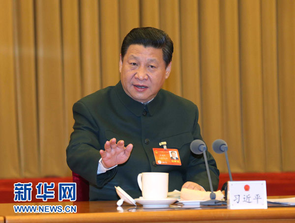 3月11日,中共中央總書記、國家主席、中央軍委主席習(xí)近平出席十二屆全國人大二次會議解放軍代表團全體會議并發(fā)表重要講話。新華社記者李剛攝
