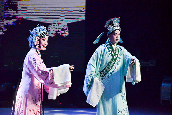 晚會上演了種類豐富的河南地方戲種。豫劇現(xiàn)代經(jīng)典曲目《朝陽溝》《倒霉大叔的婚事》《李雙雙》,傳統(tǒng)經(jīng)典曲目《鬧天宮》《梵王宮·梳妝》《秦雪梅·觀文》;百花爭艷的地方其他劇目,如曲劇《風(fēng)雪配·裝箱》、四平調(diào)《小包公·辭皇王赴任離汴京》、道情《王金豆借糧·家住河南太康縣》、越調(diào)《收姜維·一支將令往下傳》;曲胡合奏《新年大起板》二胡獨(dú)奏《故園情》……一曲曲、一段段圓潤優(yōu)美的唱腔在會場上回蕩,令現(xiàn)場聽眾為地方經(jīng)典藝術(shù)動容。