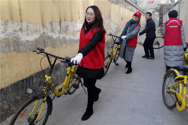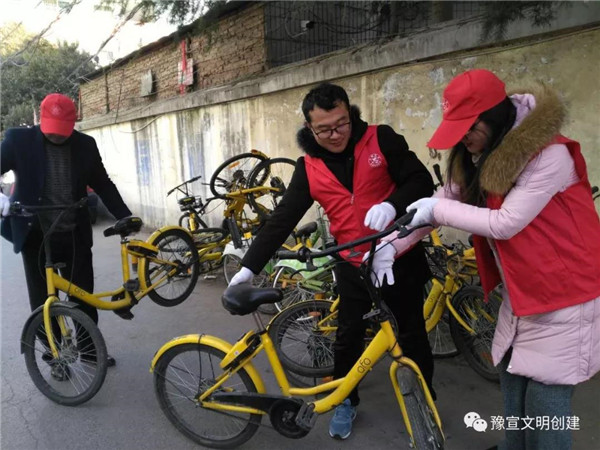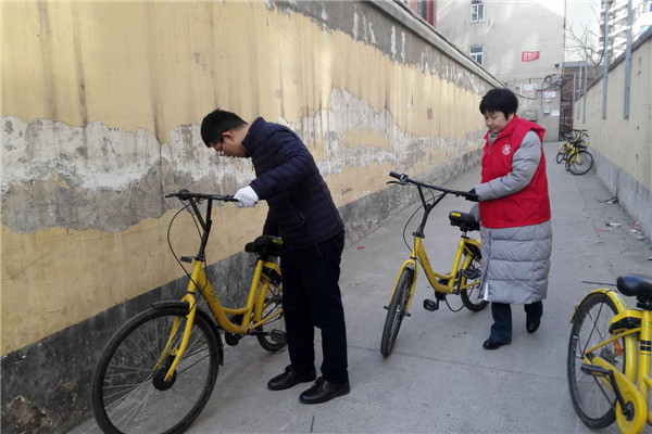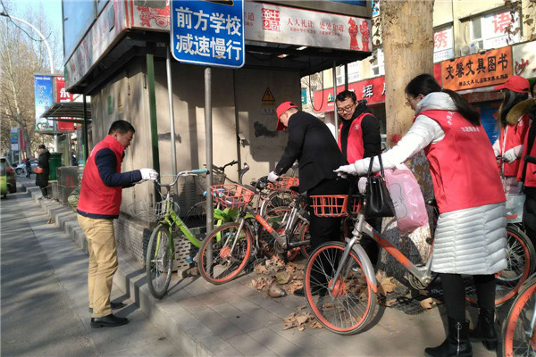 志愿者們冒著寒風和低溫,清理家屬院里違規(guī)停放小黃車,并引導社區(qū)居民講文明、樹新風,養(yǎng)成良好的行為習慣。經過一個多小時的勞動,雖然手都凍紅了,但看到近百輛擺放的整整齊齊的單車和井然有序的院子,大家都有滿滿的成就感,也體會到了奉獻的快樂。