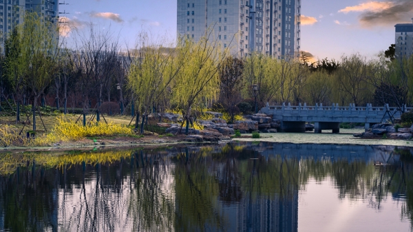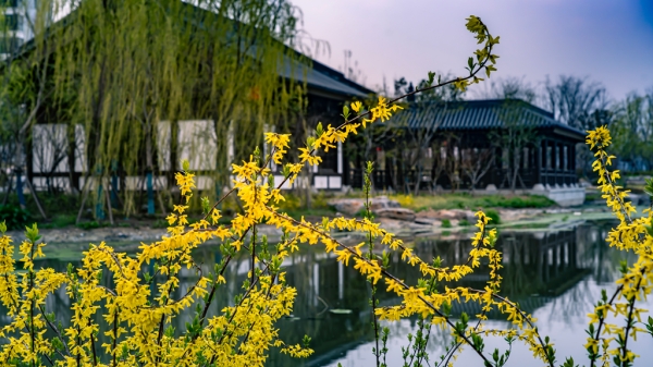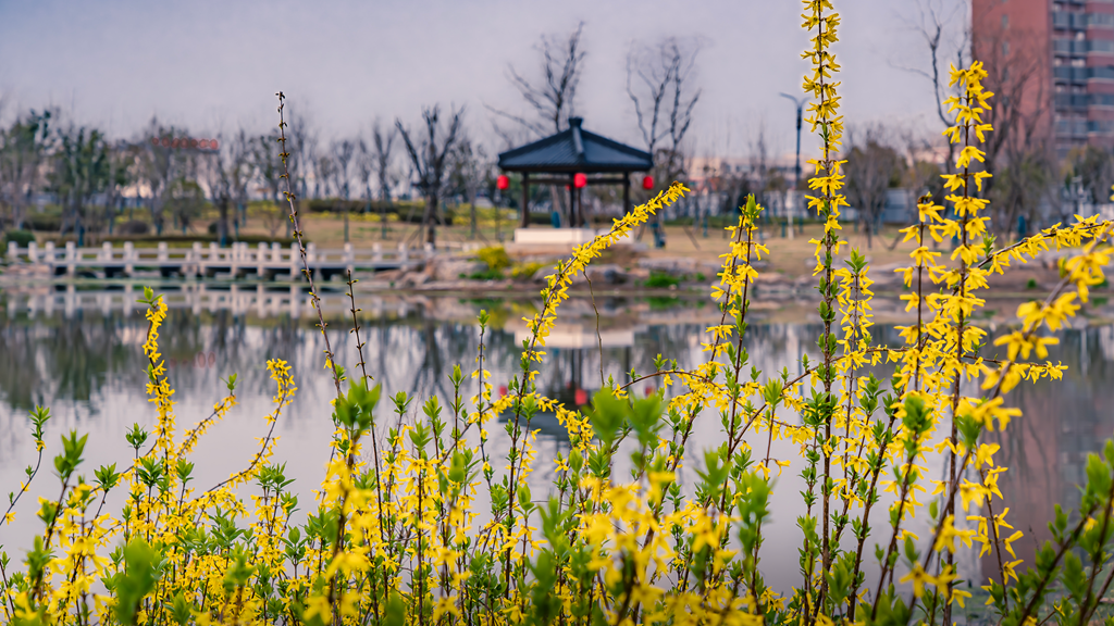 3月15日,駐馬店市遂平縣吳房文化園里,連翹花伴著春風(fēng)盛開,微風(fēng)拂過,花浪輕搖,與澄澈的湖水、古樸的亭榭相映成趣,勾勒出一幅靈動雅致的春日畫卷。